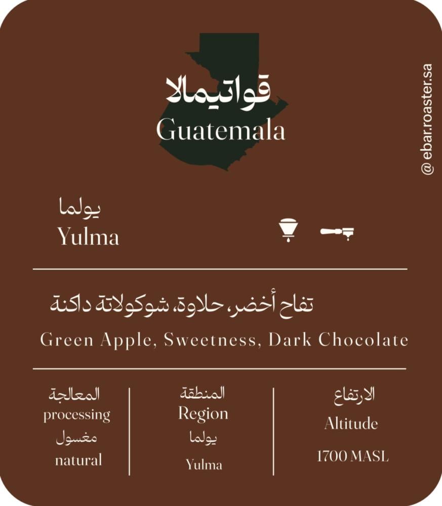 المصدر: قواتيمالاالسلالة: يولماالارتفاع: 1700 MASLالمعالجة: مغسولالإيحاءات: تفاح اخضر - حلاوة - شوكولاتة داكنةالتحضير: فلتر - إسب...